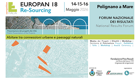 La Città di Polignano a Mare dal 14 al 16 Maggio, ospiterà il Forum Nazionale dei Risultati della diciottesima edizione di EUROPAN con il workshop insieme ai progettisti premiati. Una roadmap per il progetto/processo. Save the Date